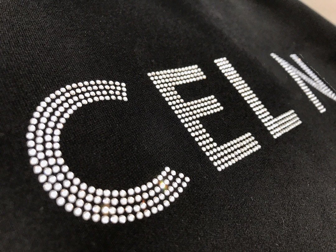 / CELINE Letter Rhinestone Hoodie Black