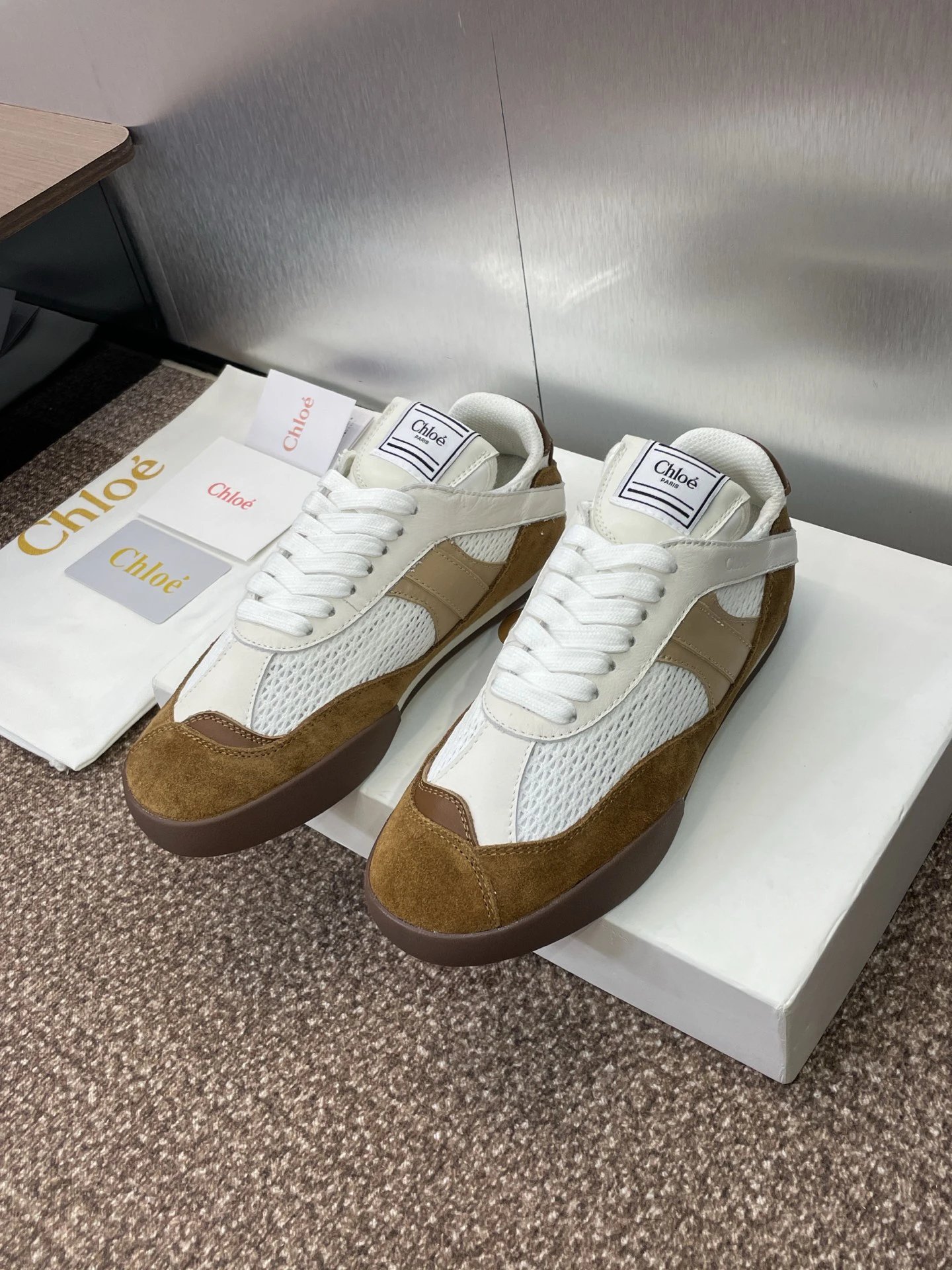 Chloe Low-Top Sneakers White Brown