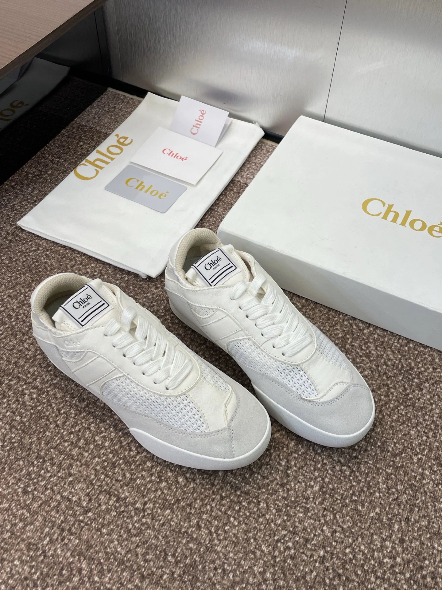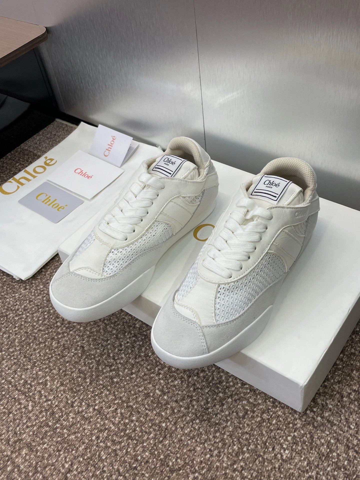 / Chloe White Leather Sneakers