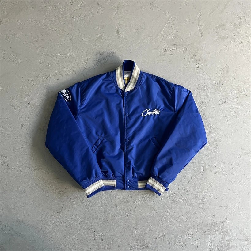 / Corteiz Men’s Embroidered Baseball Jacket i( Blue and White)