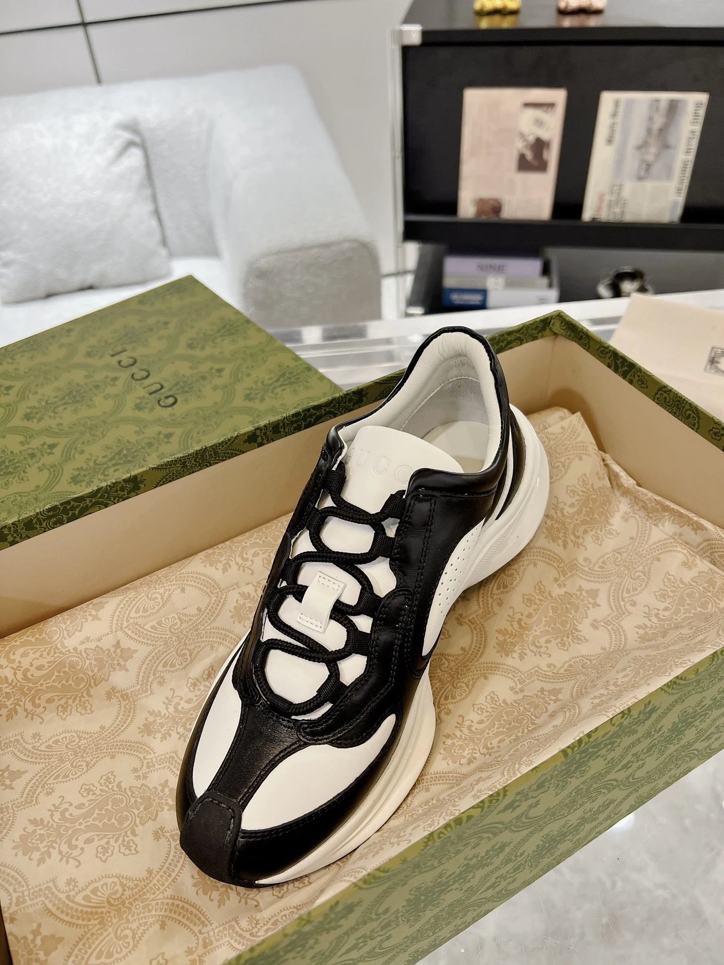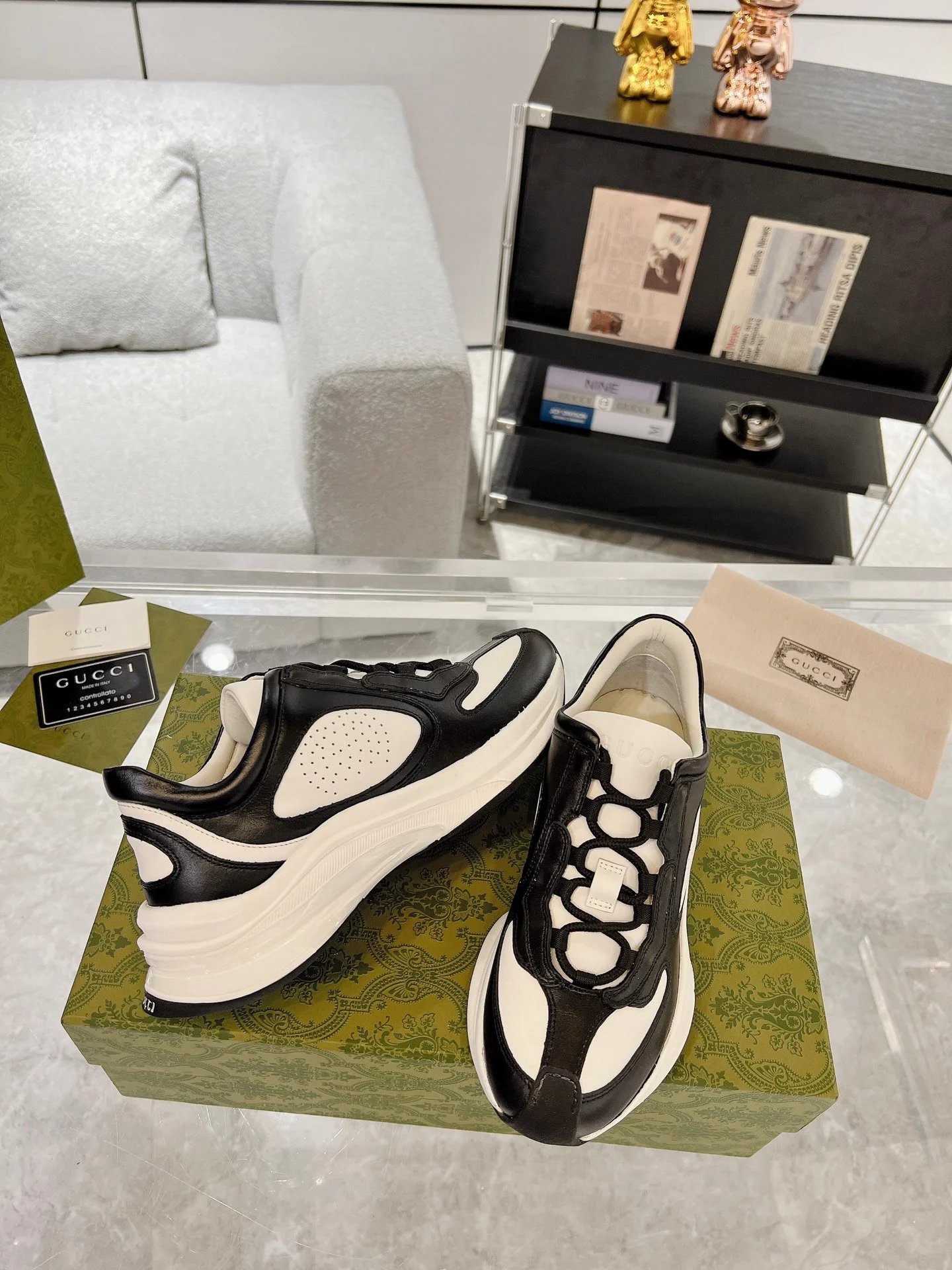/ Gucci Run Sneakers Black White