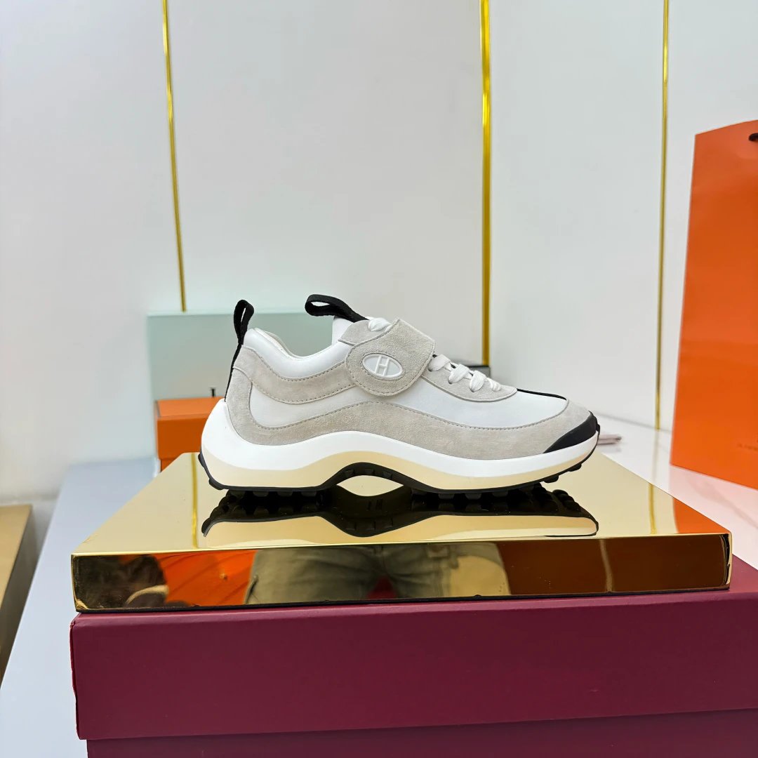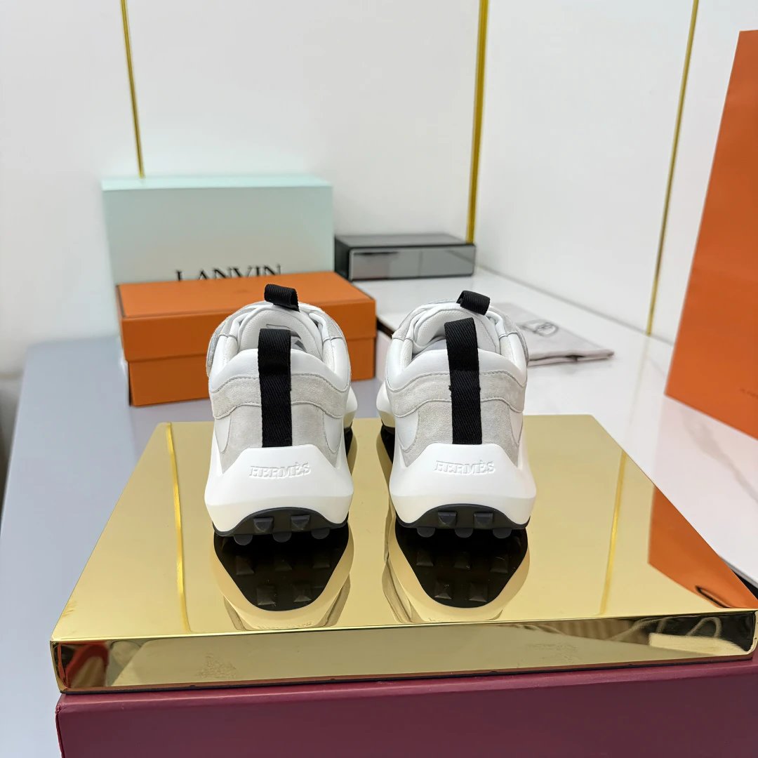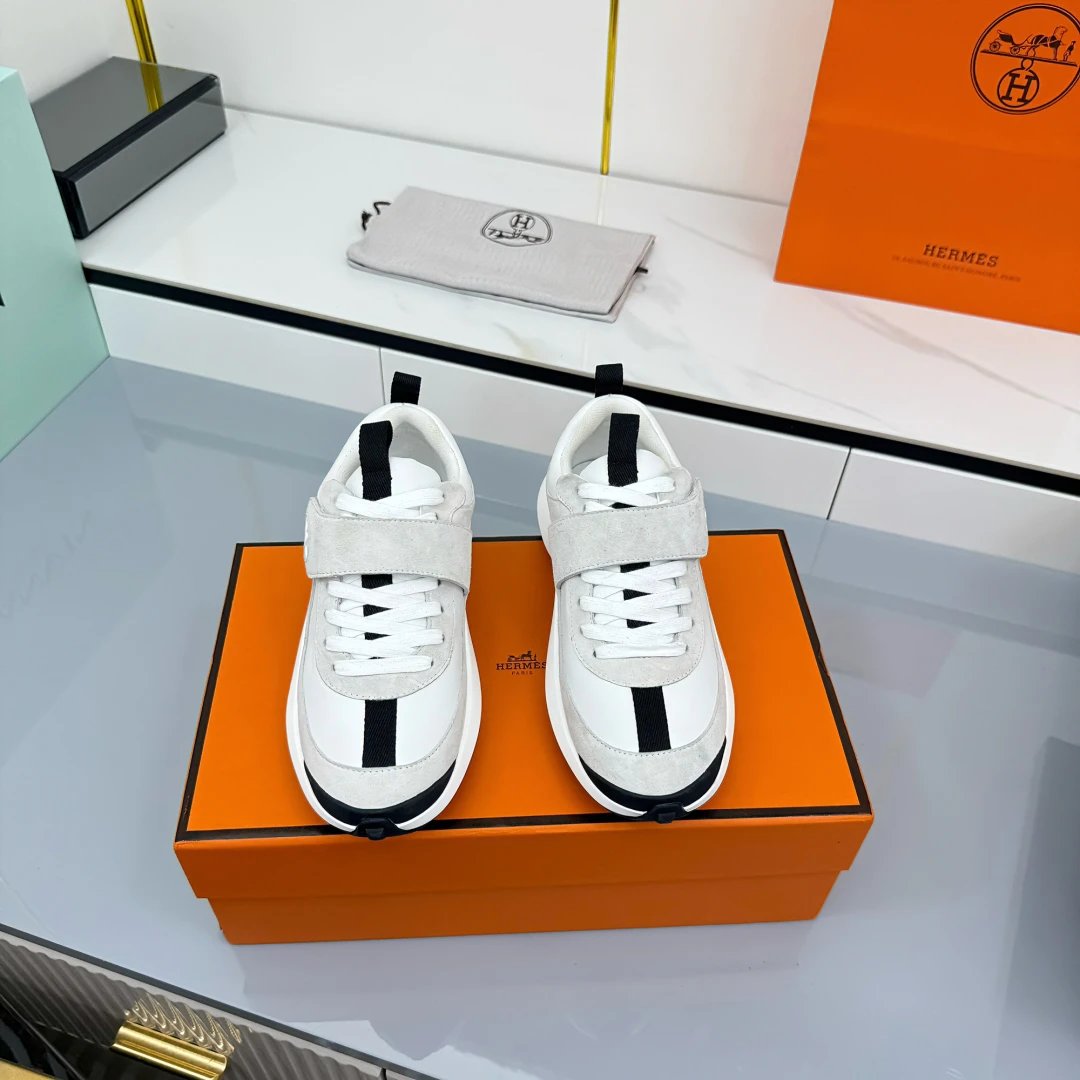 / Hermes Loop Leather Sneakers Gray White