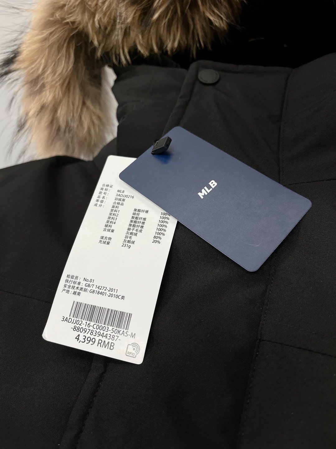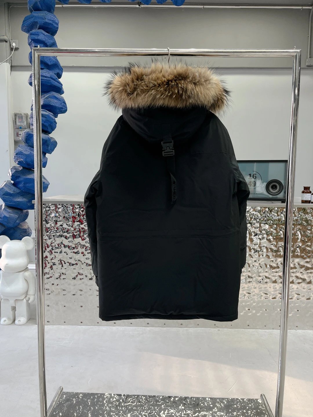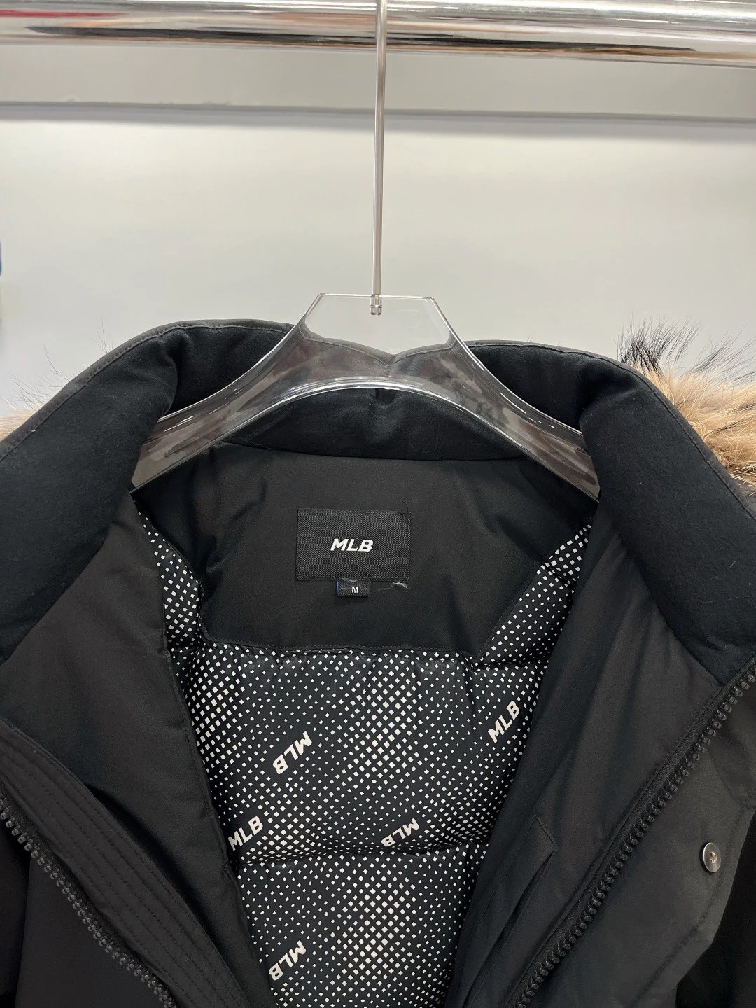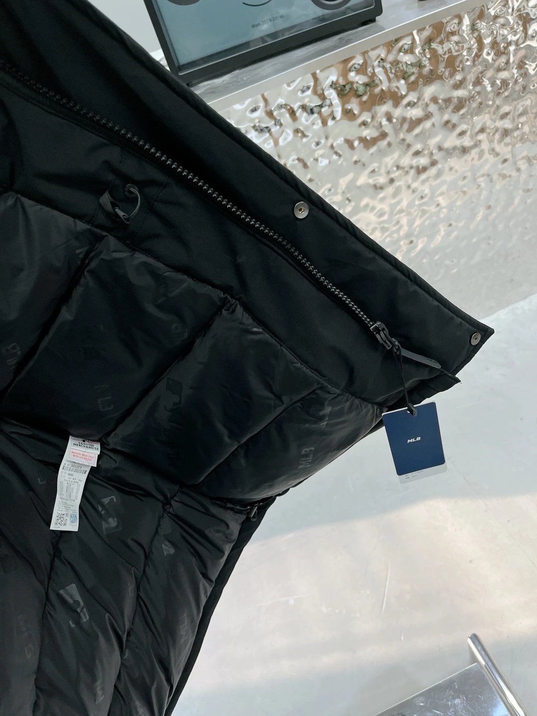 / MLB New York Yankees Oversized Logo Hooded Long Puffer Jacket Black