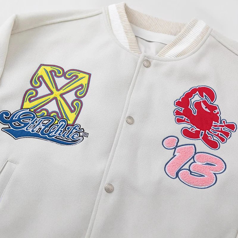Off-White Embroidered Varsity Jacket Grey