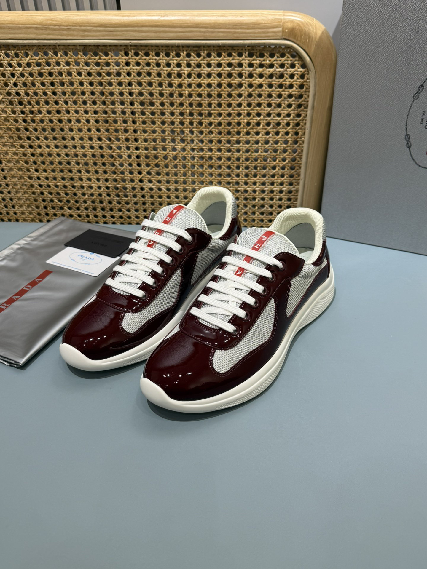/ Prada Americas Cup Burgundy Sneakers