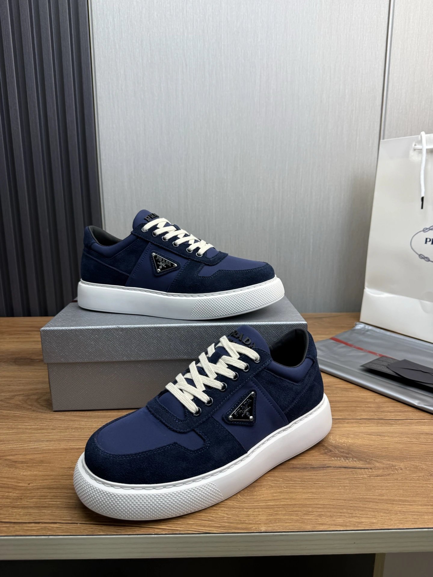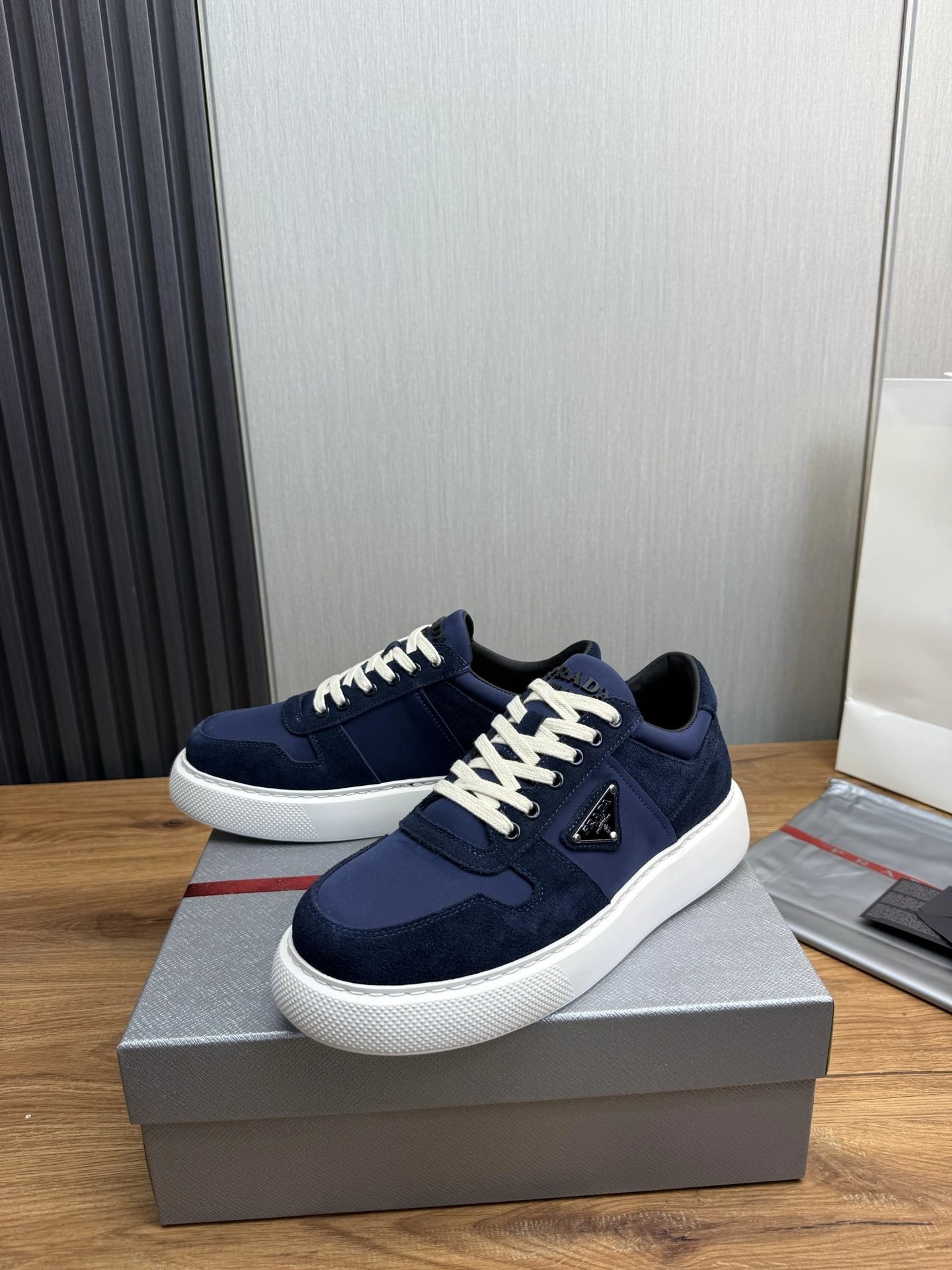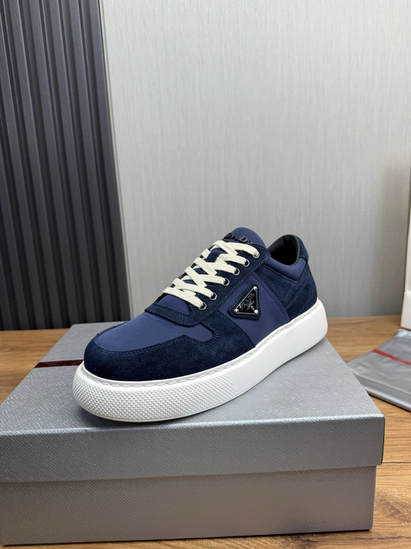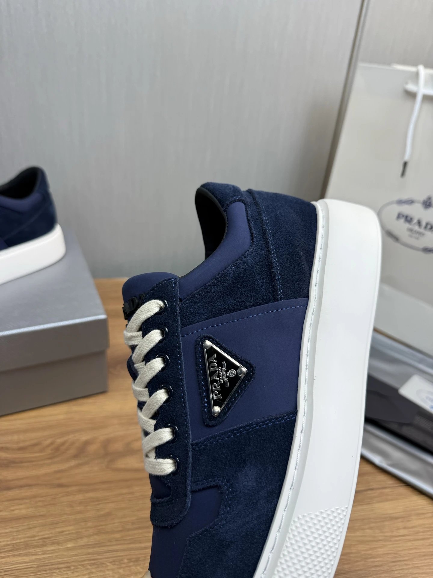Prada Downtown Suede Re-Nylon Sneakers Blue