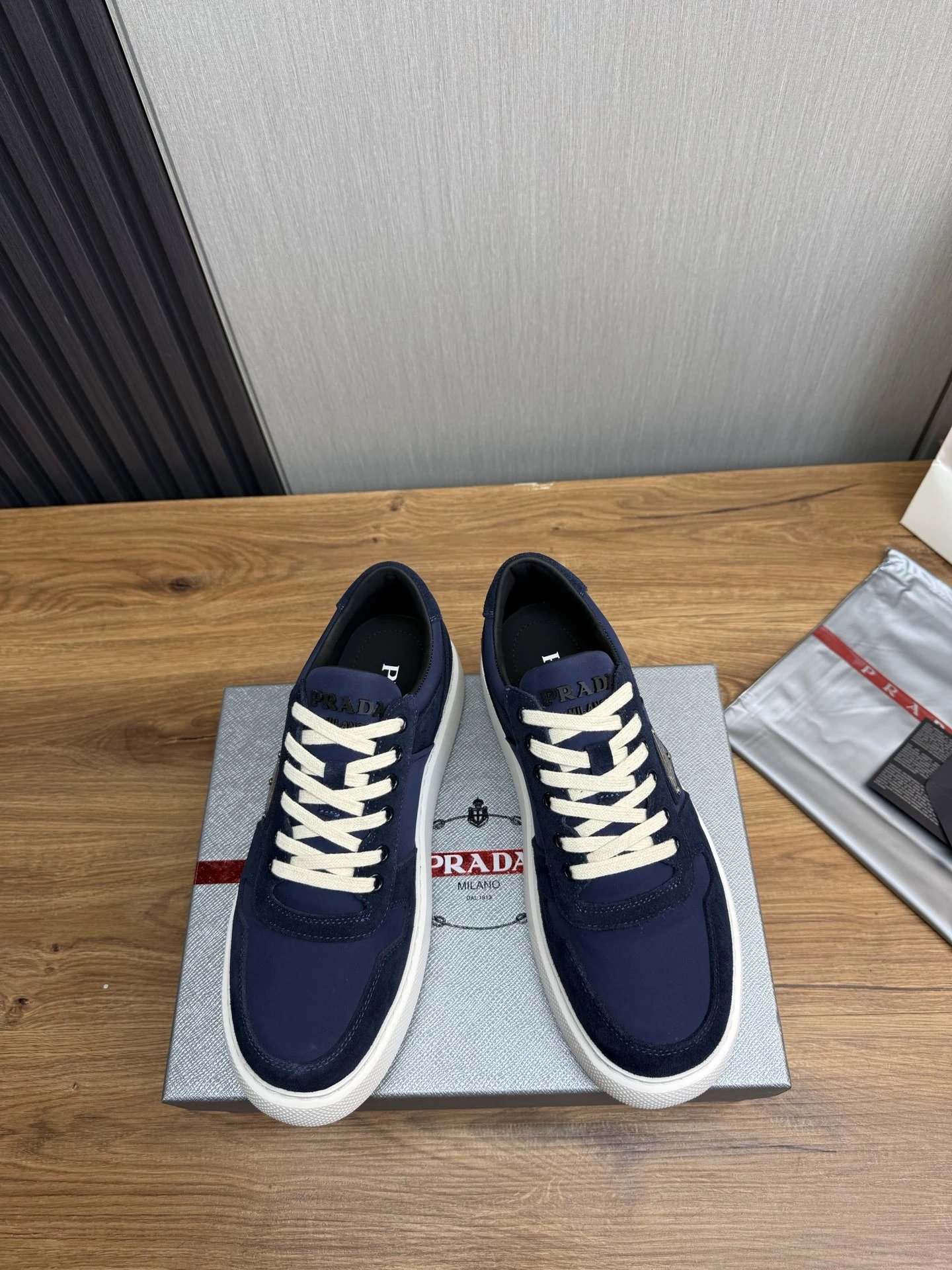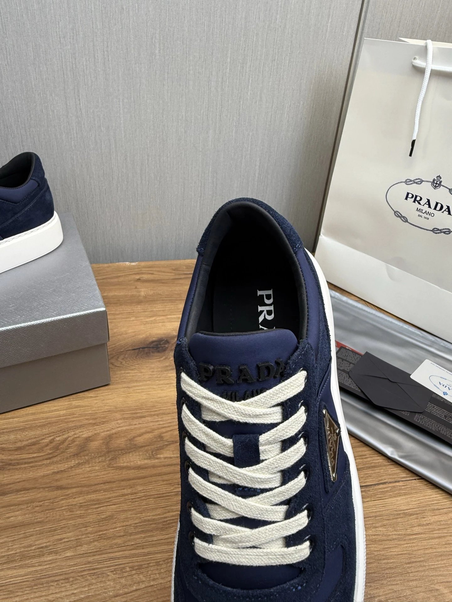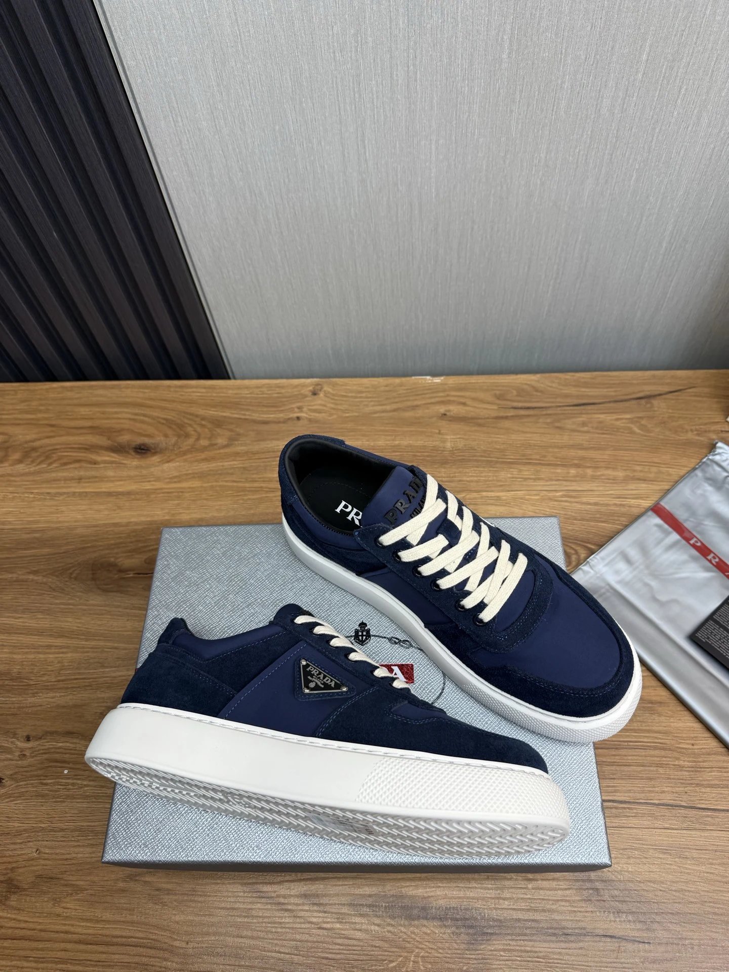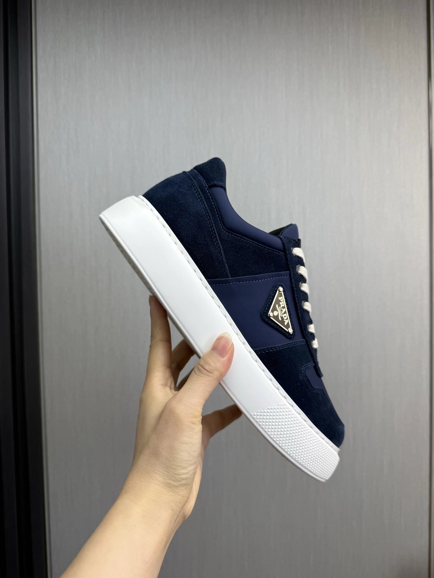 Prada Downtown Suede Re-Nylon Sneakers Blue