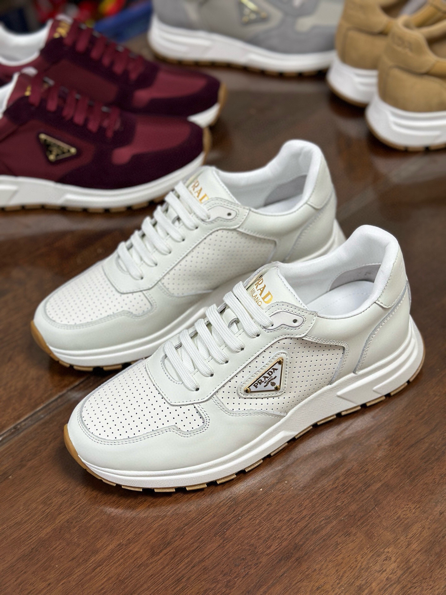 / Prada Prax 2.0 Leather Sneakers White